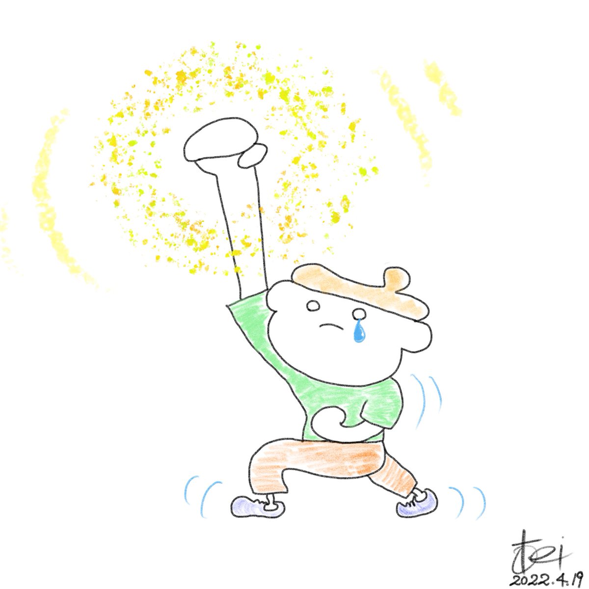 0.333…の純情な感情シリーズ50 「ぼくは、ポジティブだー!泣いてなんかないぞぉ〜!」 #イラスト #イラスト好きさんと繋がりたい #絵描きさんと繫がりたい #ポジティブ #元気 #頑張る #負けないで #応援