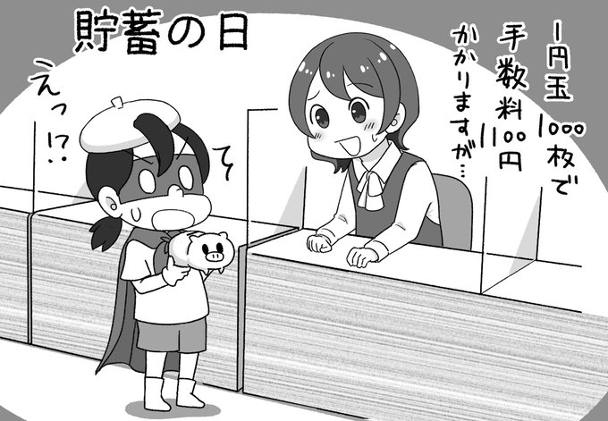 おはようございます🍁 今日は #貯蓄の日 です💰 希望を持って小銭貯金をしていても、 銀行で預入するときに 手数料の方が上回ってしまう、なんてことも…😨 計画的に貯金をしていきましょう✨ #イラスト #漫画 #今日は何の日 #企業公式相互フォロー #企業公式秋のフォロー祭り