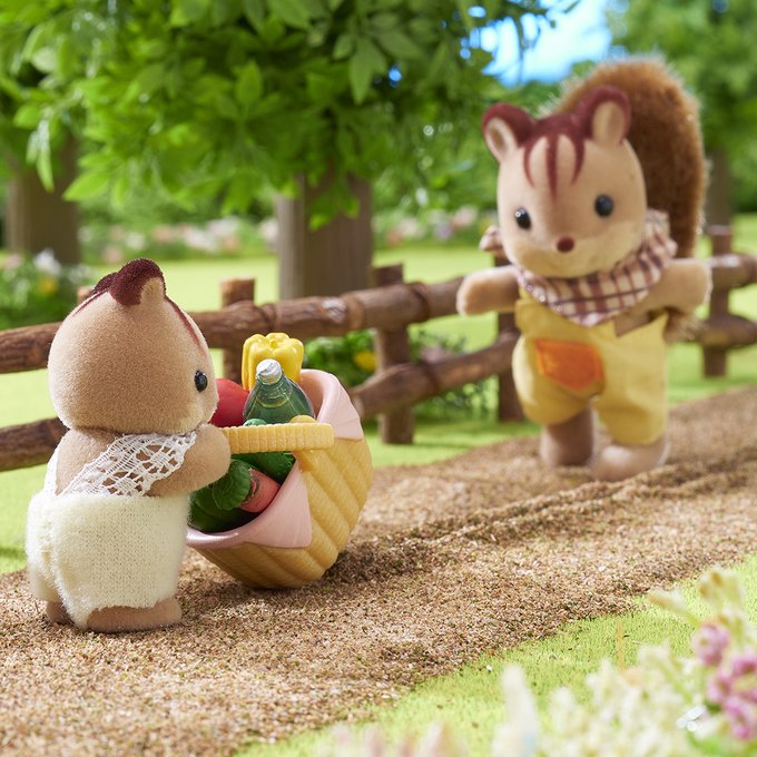 ふたりで #買い物 に来た、くるみリスのアンブローズとラルフ♪ アンブローズはひとりで荷物を持って帰りたいみたい…💧 「お、お兄ちゃんも一緒に持ちたいなぁ~!」 「じゃあいっしょにもっていいよ!」 ふたりで持てば、引きずることはなさそうですね♪ #シルバニアファミリー #シルバニア