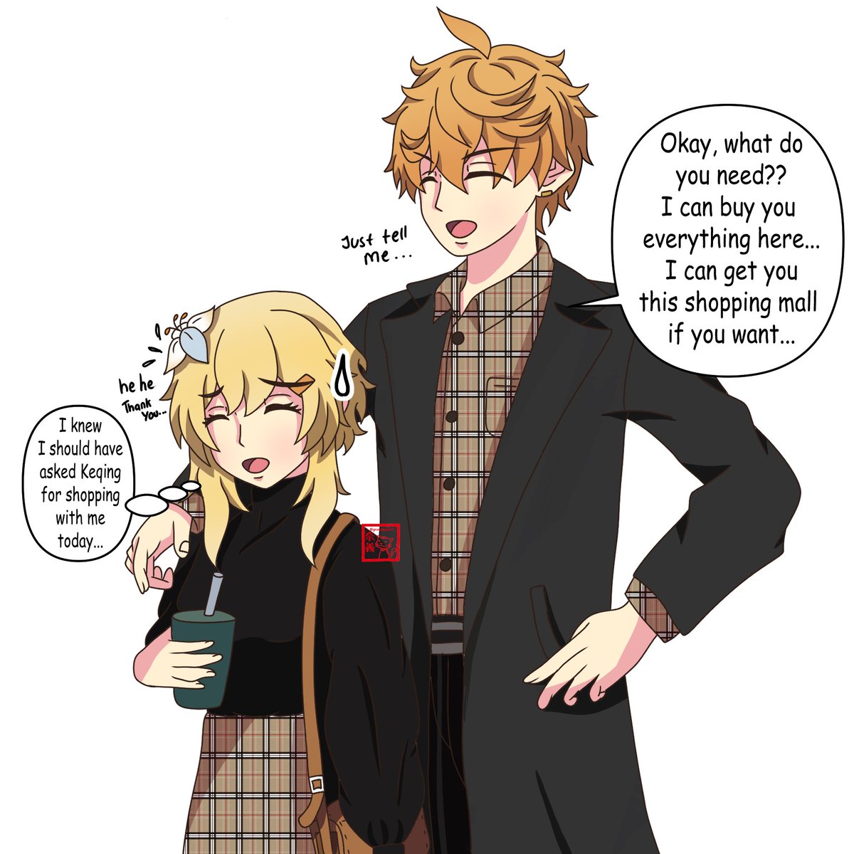 Chilumi 🐳✨ 「Shopping Time❗️」 Childe: I can get you this shopping mall if you want ╰(*´︶`*)╯♡ #genshin #genshinart #Genshinfanart #chilumi #tartaglia #childe #lumine #原神 #タル蛍 #買い物 #イラスト #ファンアート