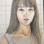#かっきーとカウントダウン 賀喜遥香ちゃん1st写真集発売まであと ふ、2日! 70枚連続賀喜絵、68枚目は 気張って久々にA4サイズケント紙に描いた色鉛筆画。前髪をこの向きに流してるのは珍しいと思います。 #賀喜遥香1st写真集まっさら #色鉛筆画 #乃木坂46 #N46_FA