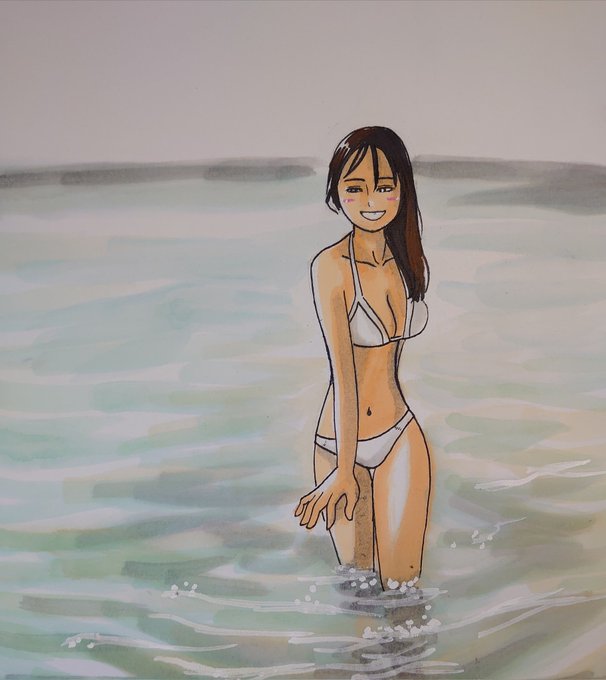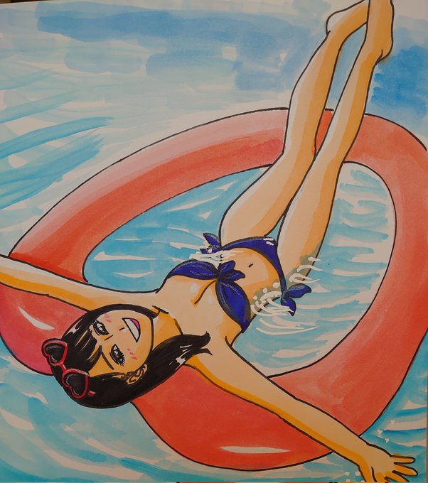 ドン! 今日描いた乃木坂ちゃんで〜す(*^^*) 今日も暑かったですね(*´Д`)www👙🕶🌊 #似顔絵 #乃木坂46 #賀喜遥香 #賀喜遥香1st写真集まっさら #かっきー #乃木坂46好きな人と繋がりたい #乃木坂イラスト
