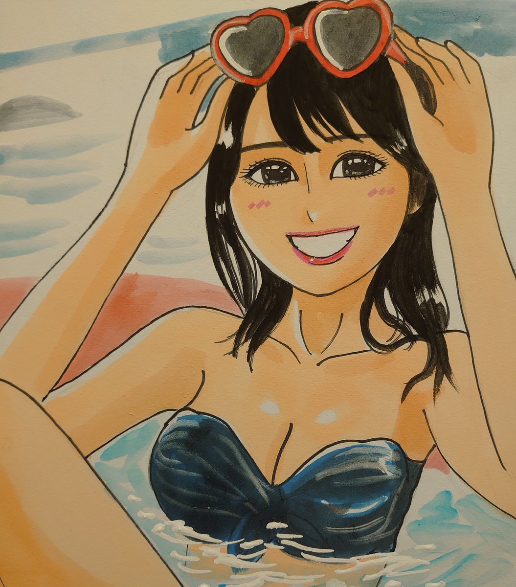 ドン! 今日描いた乃木坂ちゃんで〜す(*^^*) かっきー写真集本日発売記念🌊👙🕶(*^^*) #似顔絵 #乃木坂46 #賀喜遥香 #賀喜遥香1st写真集 #賀喜遥香1st写真集まっさら #乃木坂46好きな人と繋がりたい #乃木坂イラスト