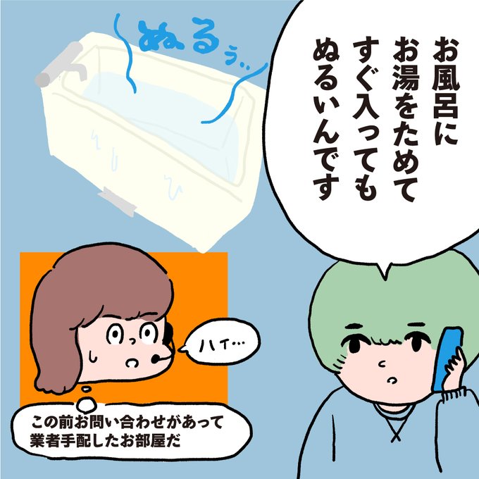 お湯はりのお知らせ<完成版> こちらのご相談の詳細は下記から詳しくご覧いただけます chintai.procall24.com/odenwa/notice-… #漫画が読めるハッシュタグ #4コマ #賃貸管理の現場から #あるあると思ったらRT