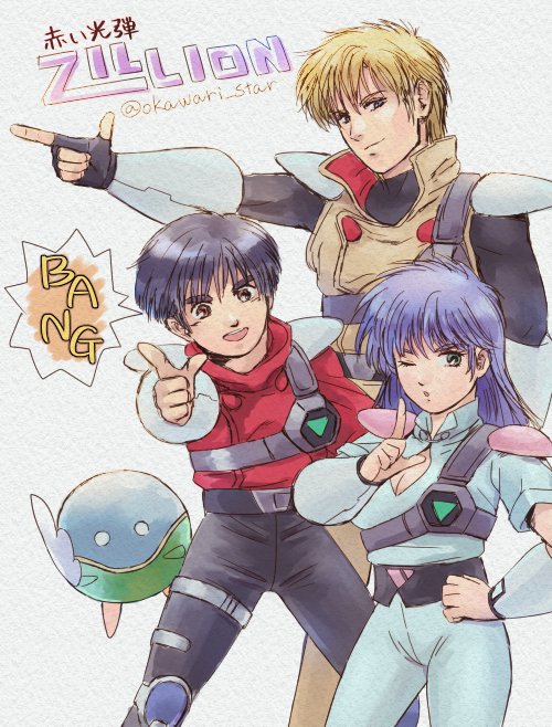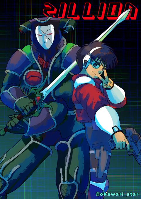 #赤い光弾ジリオン かわいい絵という事で少しデフォルメで描きました いや、ジリオンオンリーアカウントの方にアンケートRTされたからジリオンでかわいく描くのが礼儀かなと( ゚Д゚) (描くキャラが決まって有難かった) twitter.com/kuronyankobaro…
