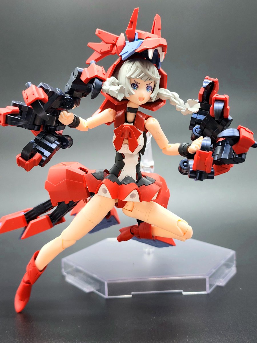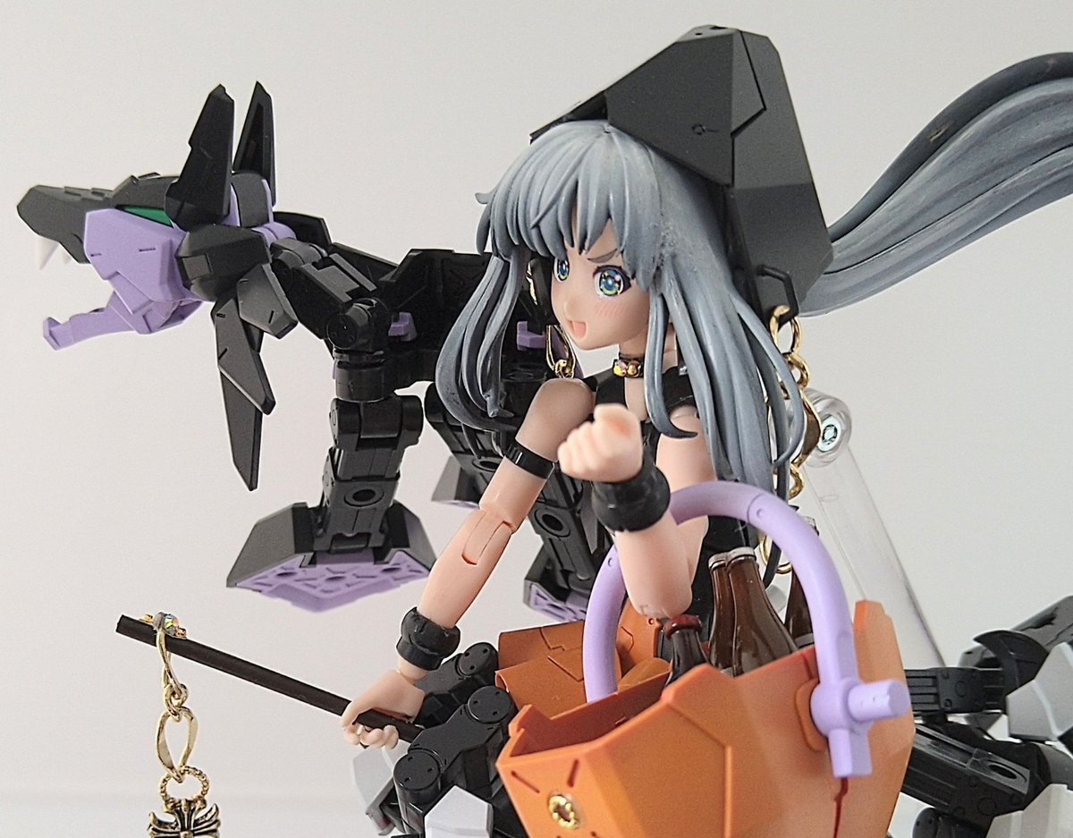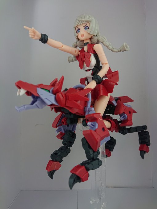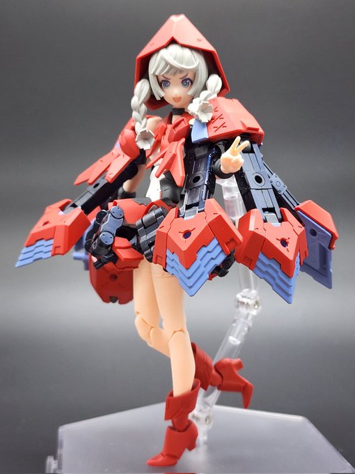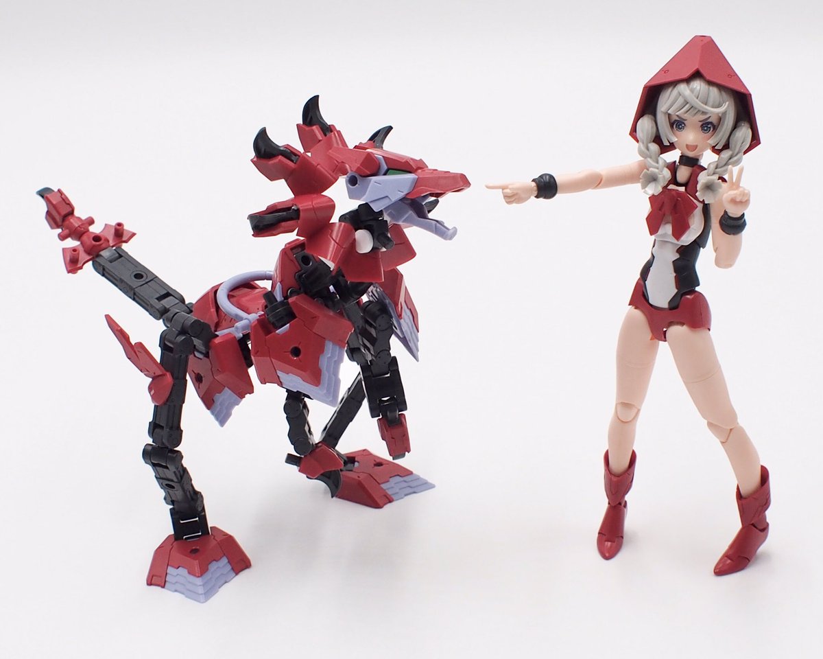 流行り()の、メガミ赤ずきんのパーツ組み替えで狼! プラモ初心者なので、@Februar_dd様レシピ公開ありがとうございました!特に後肢ポーズつけやすく頭身もかっこ良い。四足のアタリにも使えそう。 迎えた美プラ、ルルチェ赤ずきんとも太眉なのは嗜好でなく偶然のハズ…? #メガミデバイス #赤ずきん twitter.com/Februar_dd/s…