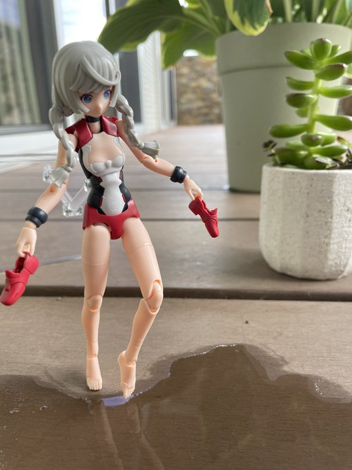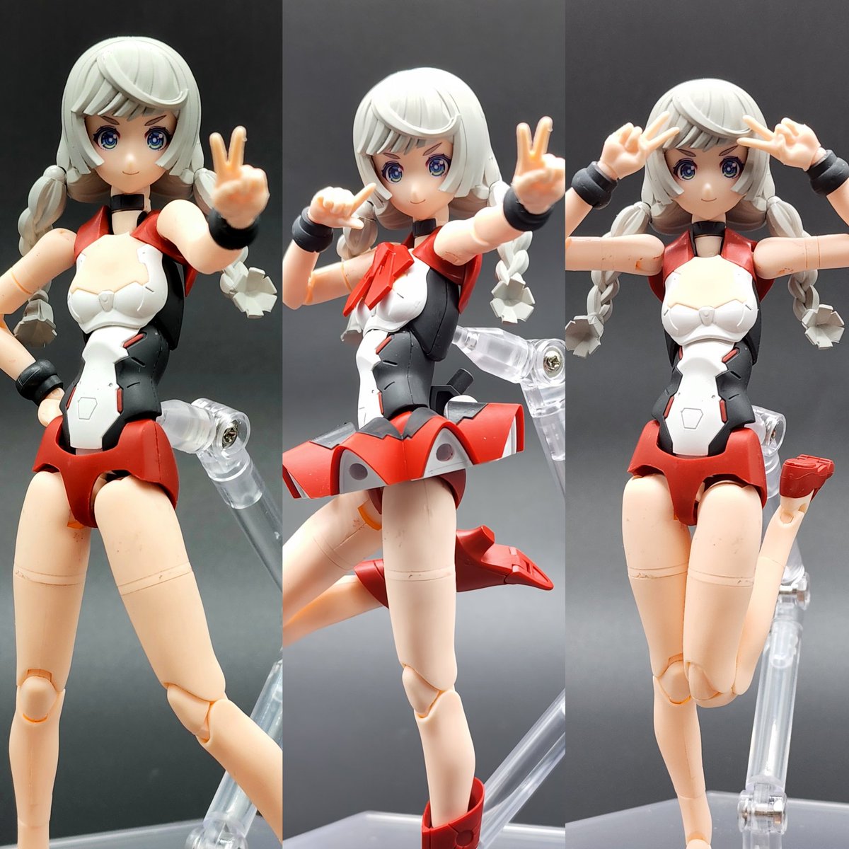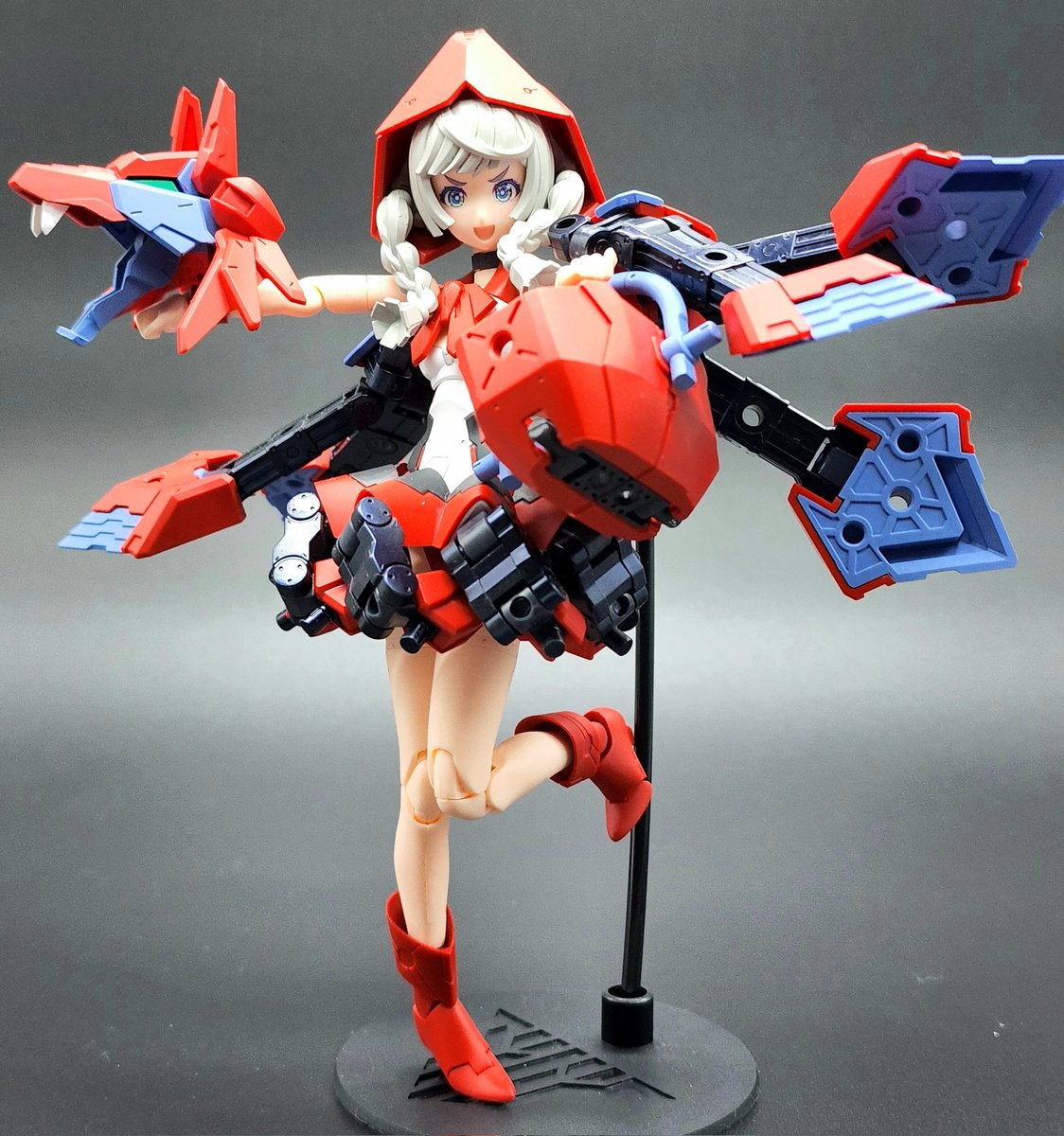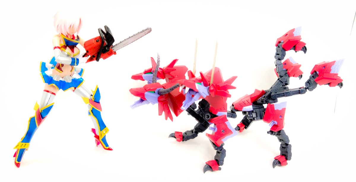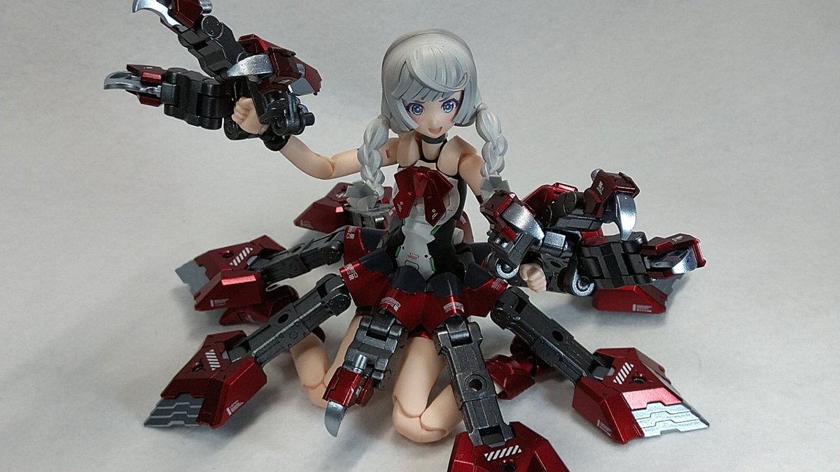 流行り()の、メガミ赤ずきんのパーツ組み替えで狼! プラモ初心者なので、@Februar_dd様レシピ公開ありがとうございました!特に後肢ポーズつけやすく頭身もかっこ良い。四足のアタリにも使えそう。 迎えた美プラ、ルルチェ赤ずきんとも太眉なのは嗜好でなく偶然のハズ…? #メガミデバイス #赤ずきん twitter.com/Februar_dd/s…