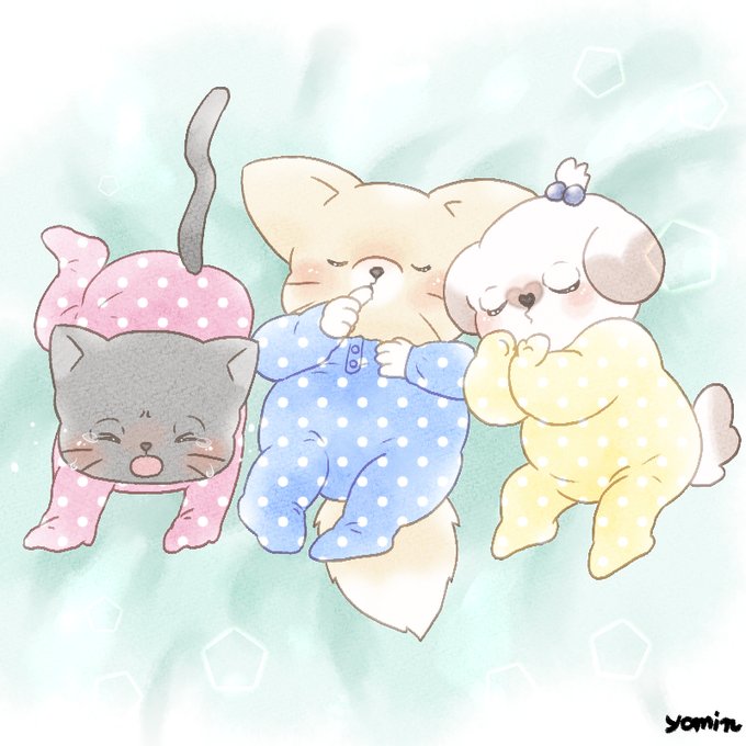 【ぷくりいぬ】10/10 #赤ちゃんの日 おはよー☀️ これはいつかのぼくたち🐶🦊🐱🍼 幼馴染だから、一緒に寝てたんだねー ヴィンスくんがぐずってるよ ママ〜!💦 #イラスト #絵描きさんと繋がりたい #イラスト好きさんと繋がりたい #ゆるいイラスト #illustration #今日は何の日