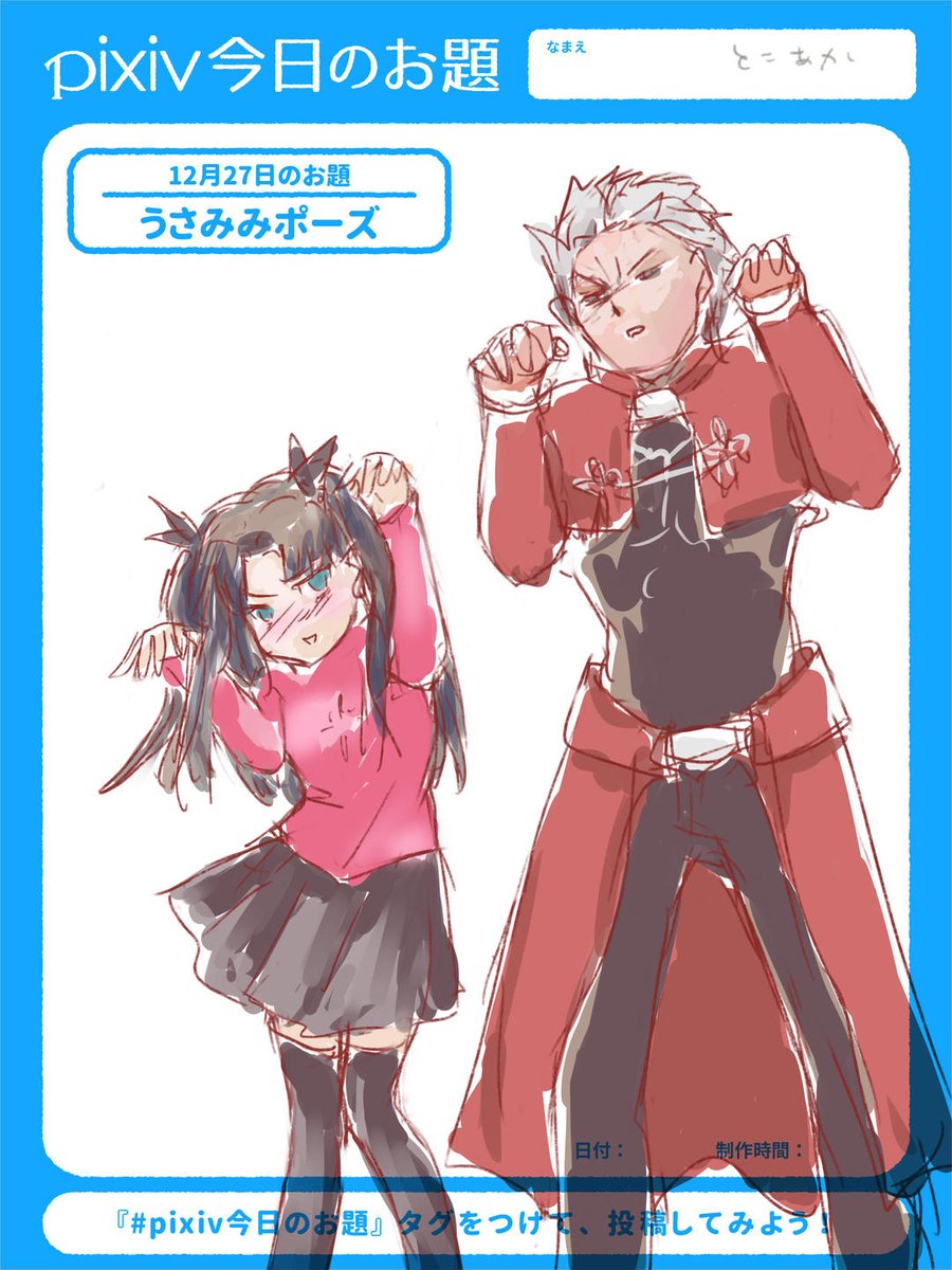 #Sketchドロー #うさみみポーズ #pixiv今日のお題 #sensei #リドローOK 「ひ、1人でウサミミとかっ。あんたもやりなさい!」 #Fate #赤主従 sketch.pixiv.net/items/23699621…