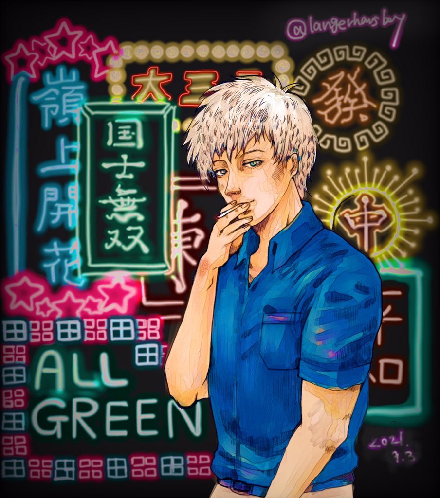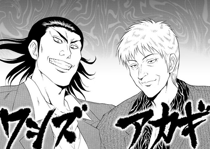 #赤木しげる追悼2021 今日は赤木しげるの命日か…過去になにか描いてなかったかな〜と探したら、昔pixivに上げた若鷲巣vs中年赤木の絵が出てきた…時空を超えた対決的な。どっちかというとワシズ絵に寄せてる?