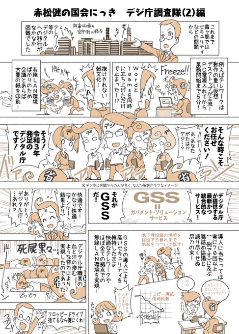 #赤松健の国会にっき (月・水・金曜に更新中) (137)デジ庁調査隊(2) 編 新たなネットワークGSSについてデジ庁に取材。導入前の省庁で、WordとTeamsを同時に起動したら固まったエピソードは笑いました。すでに農水省やこども家庭庁などでGSSが導入済みで、こちら評判いいみたいです。