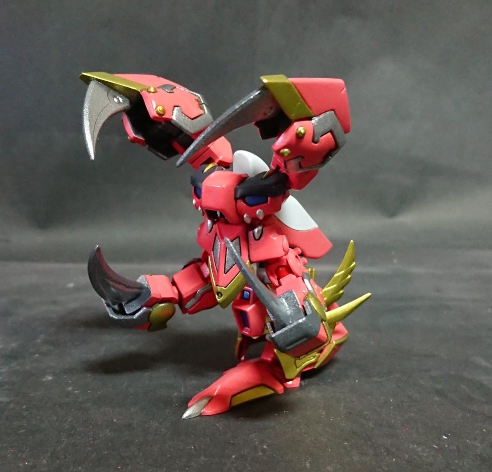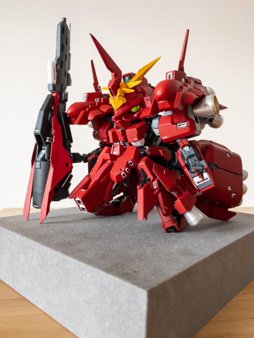 #紅白プラ合戦2022 #赤組み2022 数多あるSD世界に12体存在すると言われる #十二鬼動 が一つ。朱の爪鬼動。 スモ国伝世界の将頑駄無(マスターガンダム)である亥慈守(イージス)が纏う四本指の十二鬼動である。 十二鬼動の最上位鎧衣である赤の災鬼動に最も近い性能を誇る。