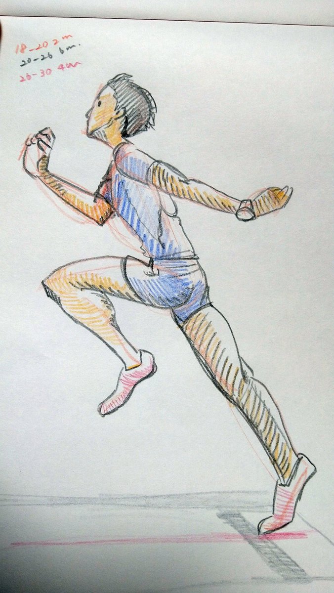 今日は『走り幅跳び』 一言…難しいっ😭 体のひねり…手前に来る手足… 無理でした〜 #お絵描き好きさんと繋がりたい #アトリエの系譜 #イラスト好きさんと繋がりたい #クロッキー #デッサン #走り幅跳び