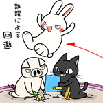🎪🃏😸😺🐶《道化師と陽気な仲間たち》、はじめての走り幅跳びに挑戦!👣🐾💢 #アトリエの系譜S #道化師と陽気な仲間たち #アナログ #モノクローム #オリジナルキャラクター #挿絵 #picturebookillustration #mangastyleillustration #スポーツ #走り幅跳び #challenge