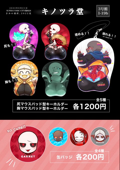 【8/21 インテックス3号館 I-19b】 遅ればせながら!お品書きです!! どうぞよろしくお願いします!! 尻・胸キーホルダーは、ウレタン製なので揉めます。ぜひ揉んでいって下さい。 #超きみの選択2022夏