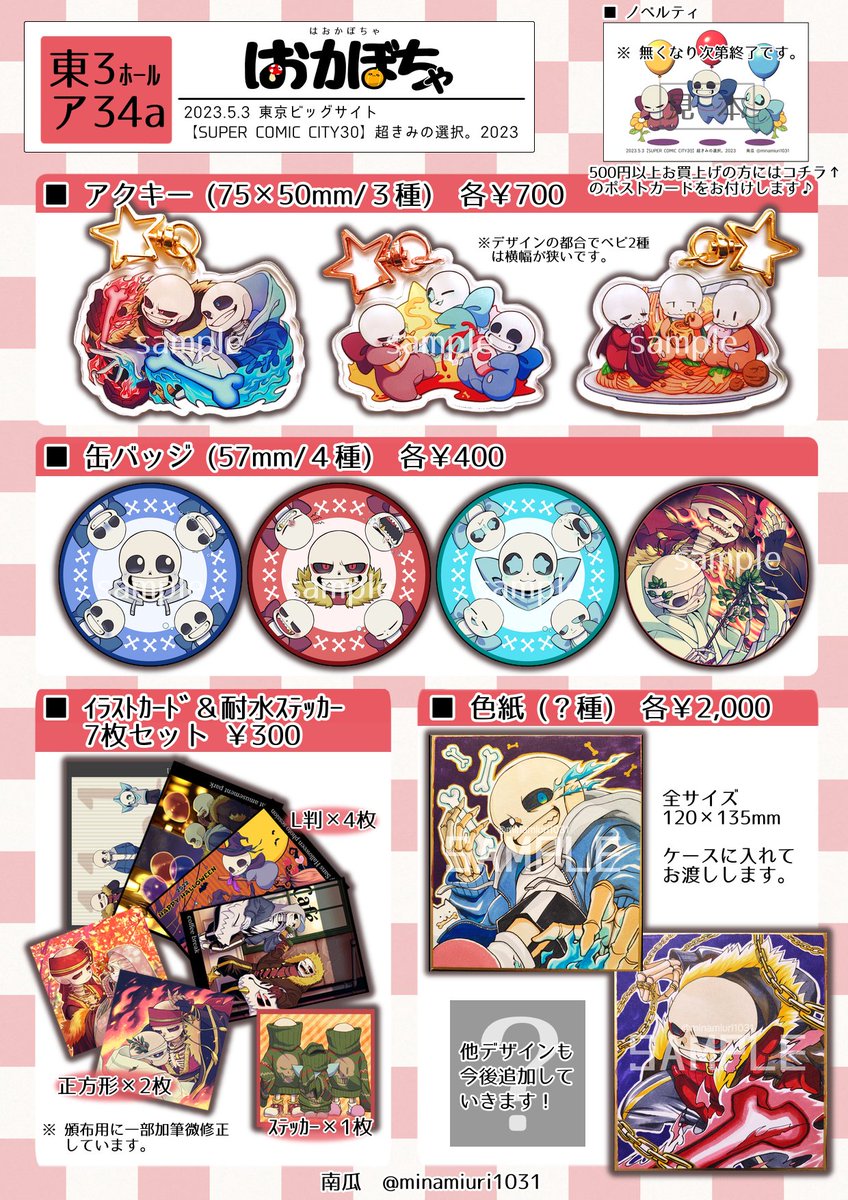 【お品書き】 5/3 SUPER COMIC CITY30 超きみの選択。2023 東3 フ04aはむもこ堂🍖 友人と2人で参加します! 前回出したグッズもちょこっとですが持っていきます!!当日よろしくお願いします🙆♀️ 相互の方のみお取り置き可です! DMでもリプでもお気軽にどうぞ!🥰 #UTdr同人 #超きみの選択2023