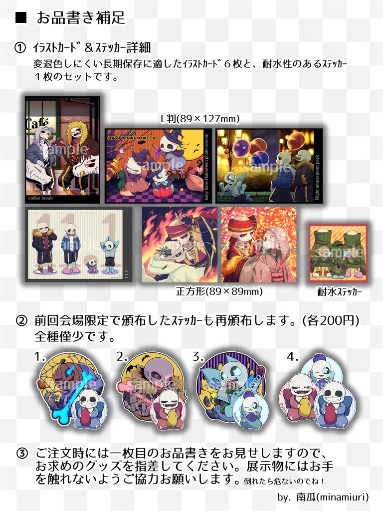 5/3 超きみの選択。 サンズ中心イラスト本が出ます! Twitterのまとめ半分、未公開の作品半分です。 是非お手にとって頂けると嬉しいです。 『表象-Representation-』 B5 / 46ページ / ¥1500円(会場価格) イベント後に通販予定です。 リプでサンプルを繋げます #超きみの選択2023 #UTDR同人