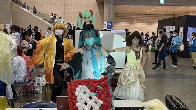 #ニコニコ超会議2022 二日目!クリエイターマーケットの #ハレオフ15周年記念オフ でハレ晴レ、グリアク、とかちつくちて、ラブどっきゅん、バラライカ等を踊ってきましたー! 写真は龍ちゃんミク【@nicoryuuga】と香蘭さん善逸と!!ヾ(*´∀`*)ノ #ニコニコ超会議2022コスプレ #超会議アルバム2022