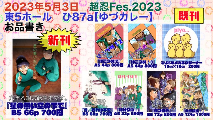 🔶5/3超忍FES.2023【東5・ひ29a】 文三木spにてお待ちしてます☺️💚💜 BOOTH通販予約も開始しました! よろしくお願いします〜! ▽おしながき詳細 pixiv.net/artworks/10753… ▽新刊サンプル(👇ツリーにも) pixiv.net/artworks/10753… #超忍fes2023頒布物 #超忍FES