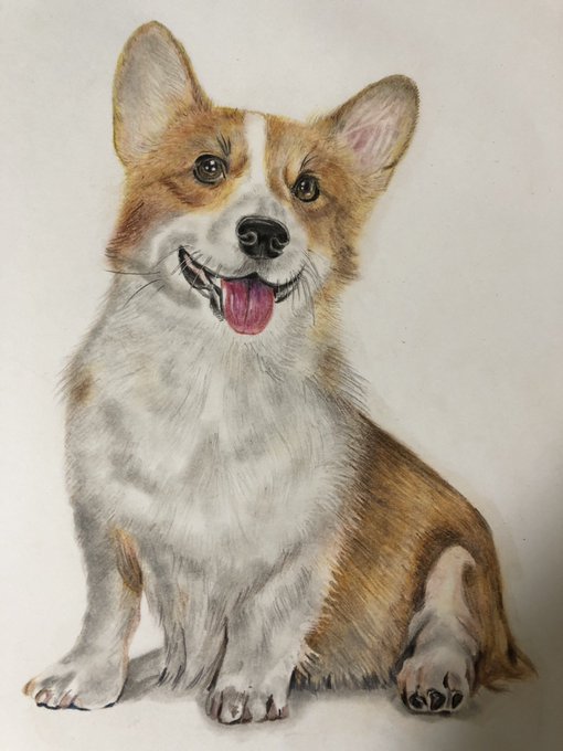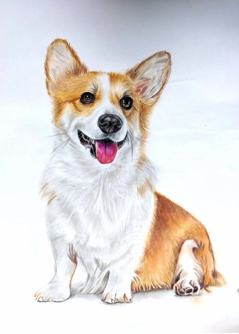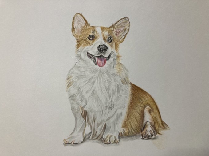 コーギー描きました🐶 次はカツカレー描きます🍛 最後だから頑張るぞー! 色鉛筆修行中🐶 #超絶リアルな色鉛筆画のテクニック #イラスト #色鉛筆 #パンパステル #犬 #ファーバーカステル #illustration #dog