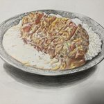 ここまる先生の超絶リアルな色鉛筆画のテクニックより。 コーギーとカツカレー 超絶リアルな色鉛筆画のテクニック、一応、終わりました! ありがとうございました! #ここまる #超絶リアルな色鉛筆画のテクニック #色鉛筆