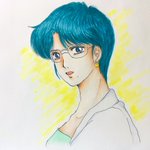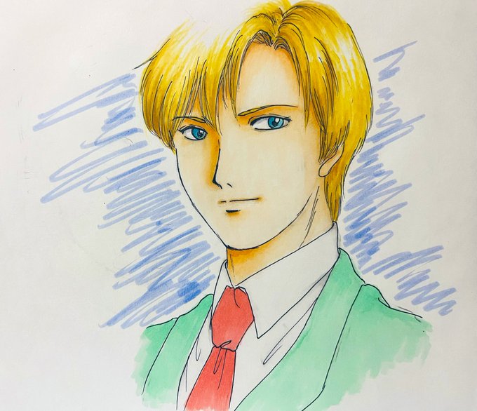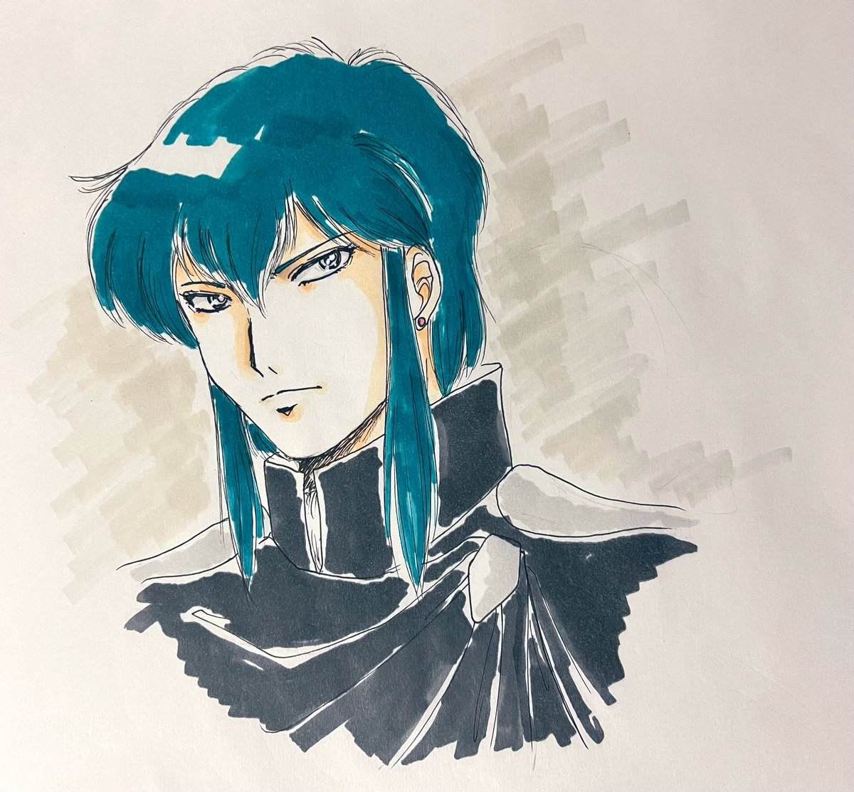 落書き。およそ似ないが髪と服の色でチャック先生、と言う事で😭 女好きだけでなく、熱い心の持ち主になってるのは井上ボイスのなせる技では。ラバレでは良い兄さん的役割。ヒーローは俺だろってね。 #落書き #アナログ #超音戦士ボーグマン #チャック・スェーガー
