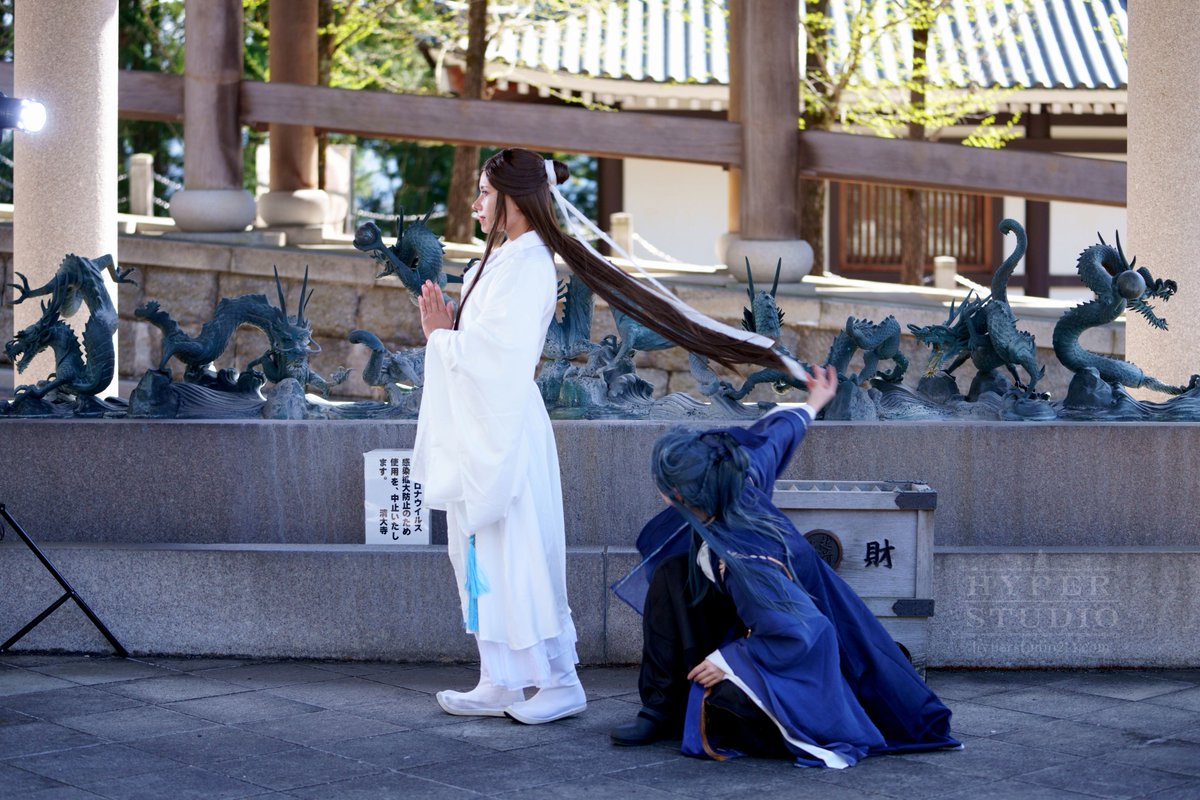 画角に入らない姿勢を”全力で”実行した #レイヤーの理想と現実 謝憐:霧葉さん ひらみ職人 霊文:miyu photo:@hiroaki_suemasa #チャマコス #越前大仏 【cosplay 天官賜福 TGCF 霊文】