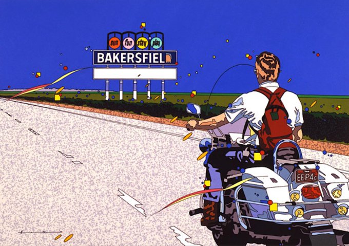 原画『BAKERSFIELD』since 1982 #鈴木英人 #イラストレーション #イラストレーター #アート #原画 #パントーン #アメリカ #バイク #路上 #eizinsuzuki #illustration #illustrator #originalpicture #art #artworks #America #motorcycle #road