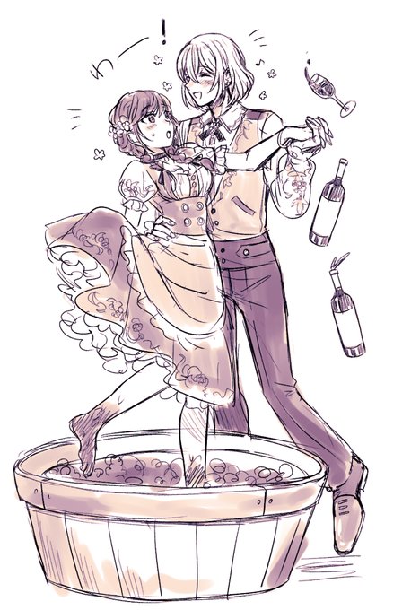 🍇踏み踏み話をきいてパッションのままに描いた落書きかい晶♀です! カは晶ちゃんと一緒になってふみふみしてくれたらいいなー…ついでに酔っ払って踊り出してほしいなーという妄想です… #踏み踏みBUDOU祭