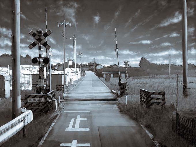 「Final Distance」 かなり昔に描いた絵。永遠の黄昏。永遠に開かない踏切。 #デジタル絵画 #イラスト #開かずの踏切 #踏切 #デジタルペインティング #絵描きさんと繋がりたい #絵師さんと繋がりたい