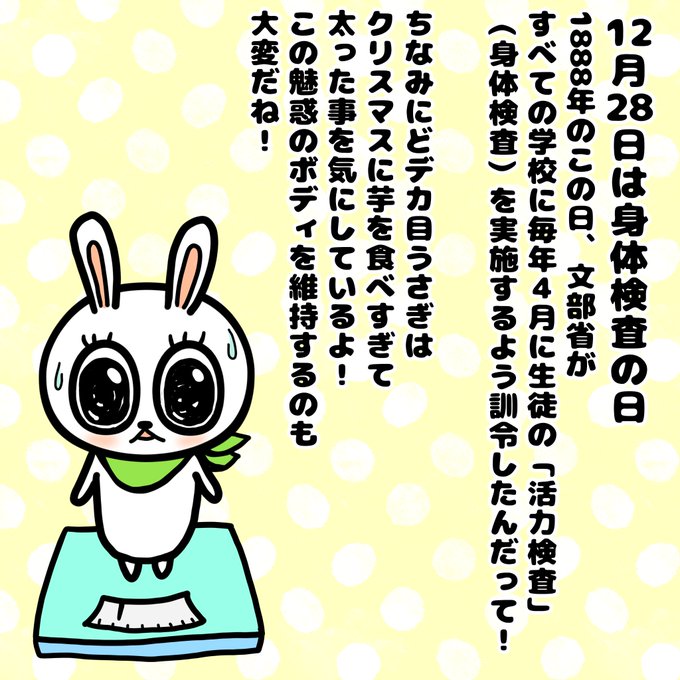 おはようセカイ! タマエちゃんのイラストです。 今日の記念日は 『身体検査の日』 1888年、文部省(現在の文部科学省)がすべての学校に生徒の身体検査を実施を訓令しました。 #身体検査の日 #イラスト #イラスト好きな人と繋がりたい #絵描きさんと繫がりたい #絵描きさんとつながりたい #삽화