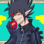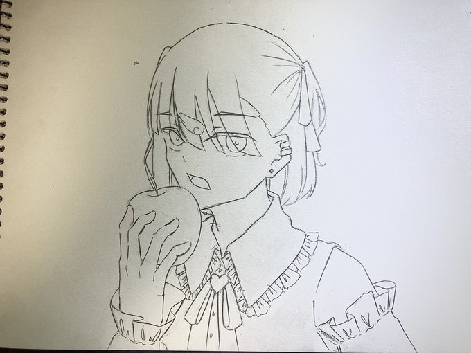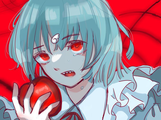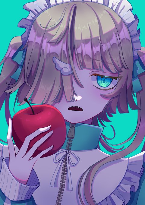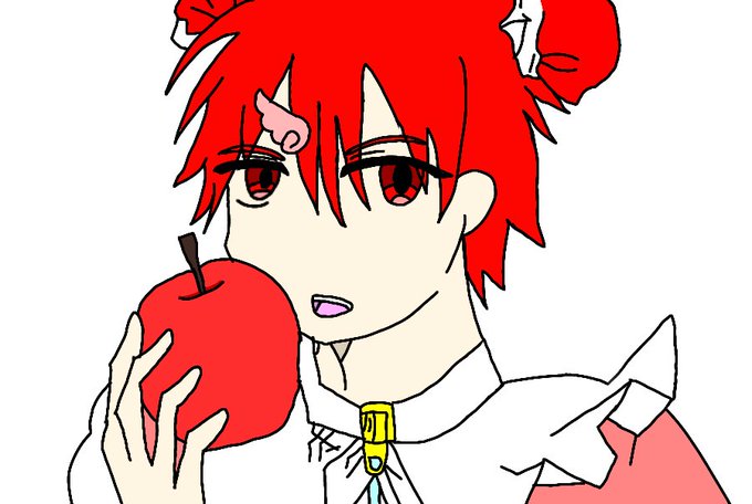 #イラスト #転生林檎 #絵師さんと繋がりたい 昨日のやつに食べた感だした ちょっと口の中とか汚いなー……とか思う方は見ないように……って見えちゃうのか、でも気を付けてください💦 覚醒した感じで目光らせてみた!
