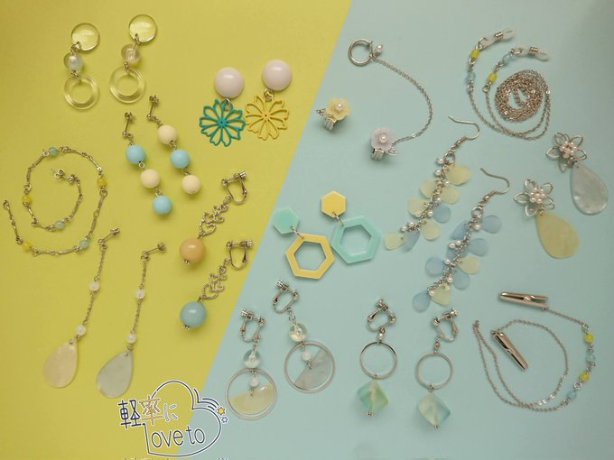 新作アクセサリーはこれで全部です 普段使いしやすいシンプルめなの作りました 黄色背景が¥800、水色背景が¥1,000です 間に合えばオビツ11サイズの黄黒ペアトートバッグも出す予定です #軽率にlove_to_PR #軽率にlove_to