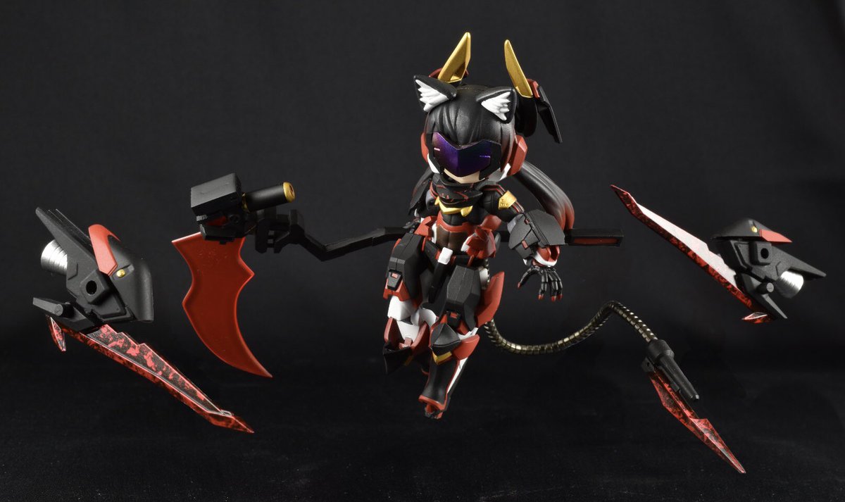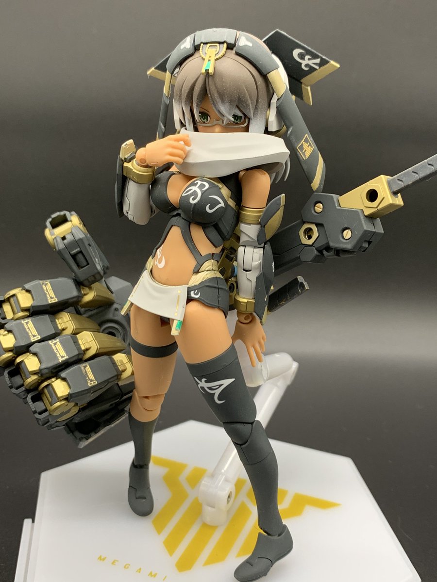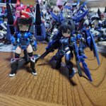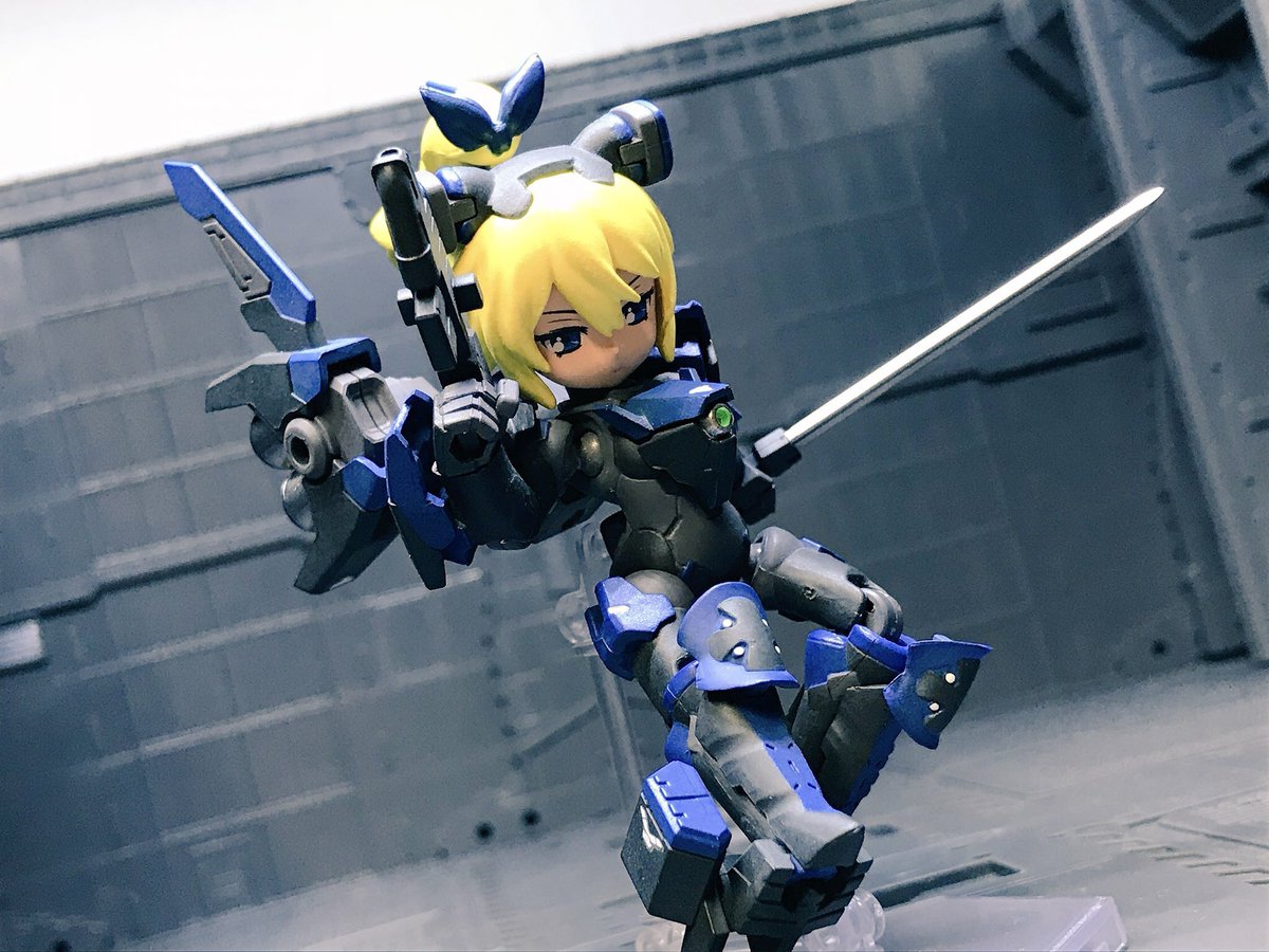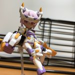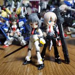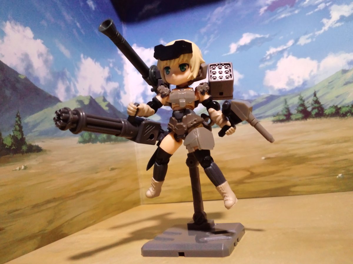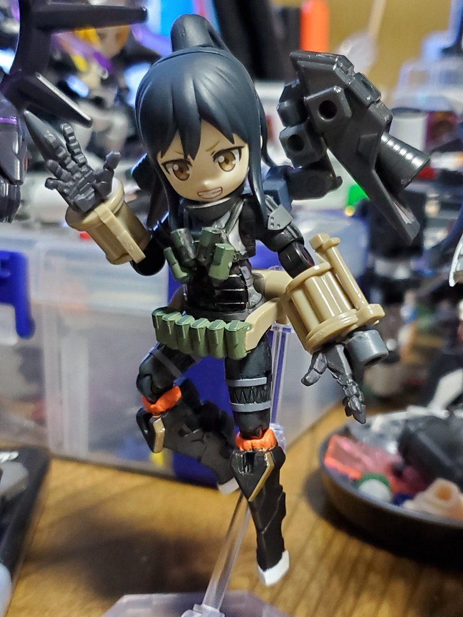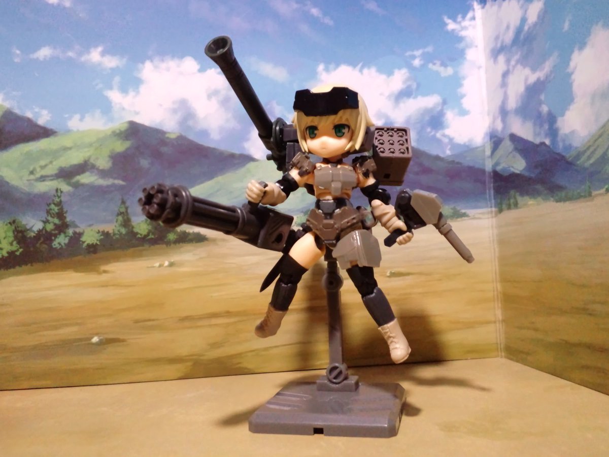 【今夜の #轟雷 】 #デスクトップアーミー #軽量型はイケメン ミニ式一型『轟雷』 前線指揮型・改【軽一式】 …本機【一式+ガトリング】のコンセプトを軸に、P4アイギス・オルギアの武装を換装した事により機動性が向上。砲撃重視だが近接格闘戦闘を想定した軽量化セットアップ。