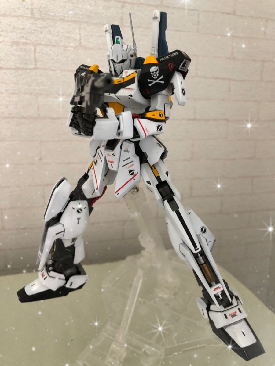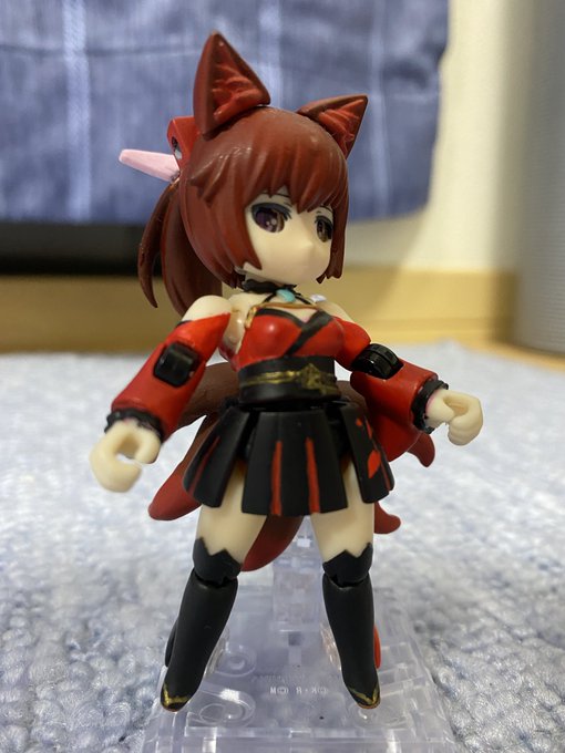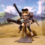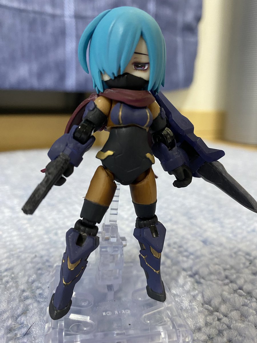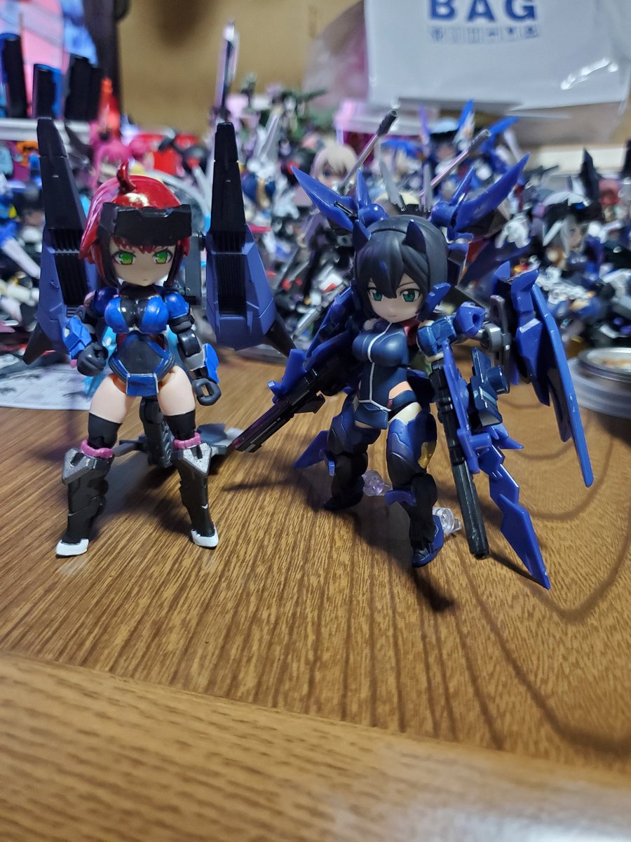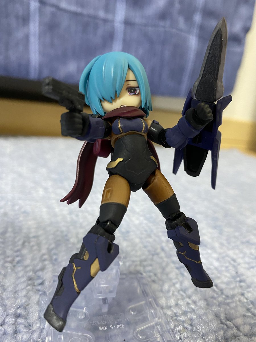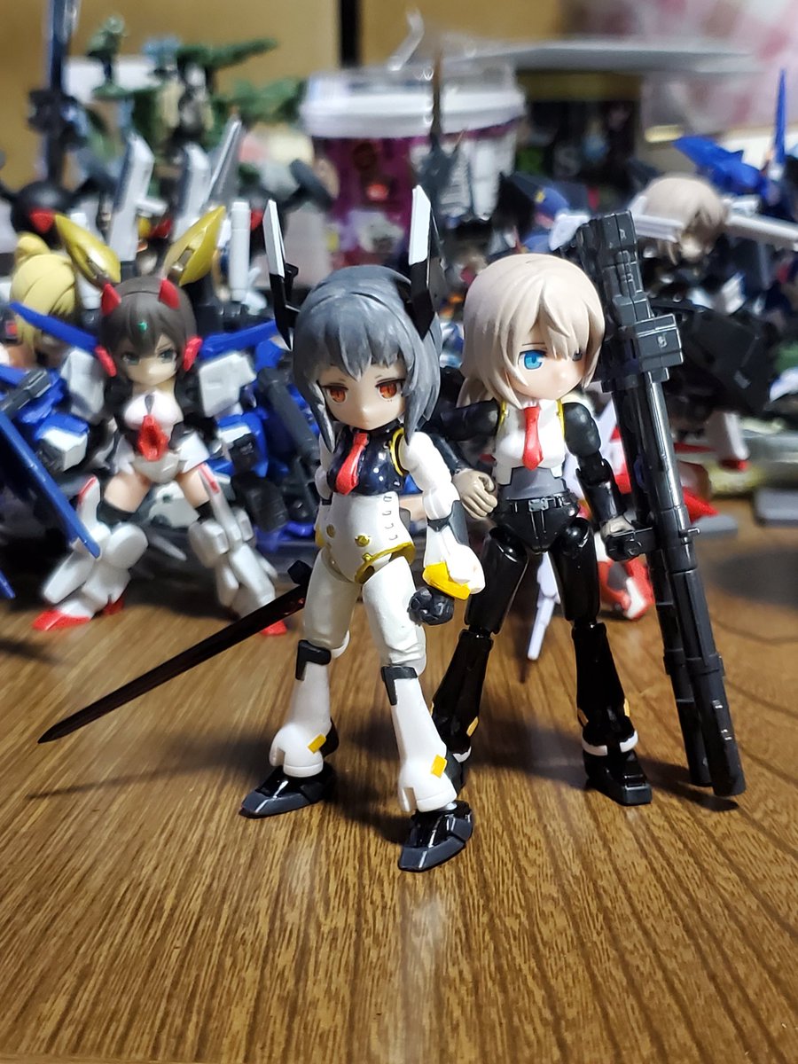 【今夜の #轟雷 】 #デスクトップアーミー #軽量型はイケメン ミニ式一型『轟雷』 前線指揮型・改【軽一式】 …本機【一式+ガトリング】のコンセプトを軸に、P4アイギス・オルギアの武装を換装した事により機動性が向上。砲撃重視だが近接格闘戦闘を想定した軽量化セットアップ。