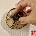 エゾモモンガとクワガタたち、展示しやすいように加工しました +(人´∀`*)+゚💦 クヌギの木にアクリル絵の具で直接描いています。 (*´∀`*)ノ✨ #輪切り絵アート #リカビックアート展