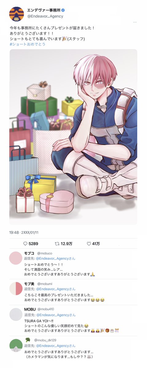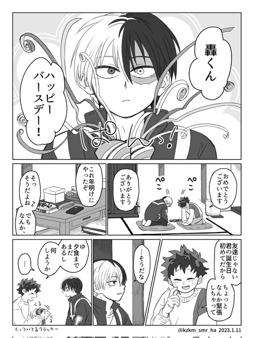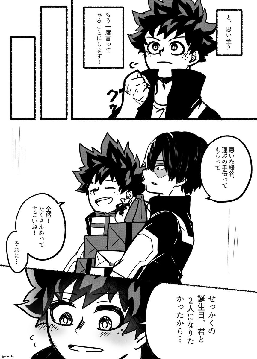 🍰誕生日ネタ 轟出というか轟→出(無自覚) 🍰🥦 当日にちゃんと欲しかったプレゼント貰うマンと、プレゼントあげるマンがいます おめでとう!おめでとう!!🎉 #轟出の轟くん誕生祭 #誕生日轟出2022
