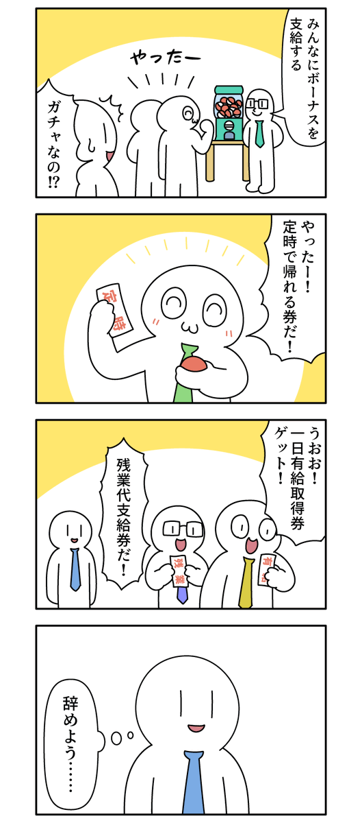 月曜日、頑張ったあなたへ。 ―― 褒めラニアン @hometenobaseyo #ヤメコミ #辞めたい ▼仕事辞めたい瞬間の4コマ漫画 tenshoku.mynavi.jp/knowhow/yameco…