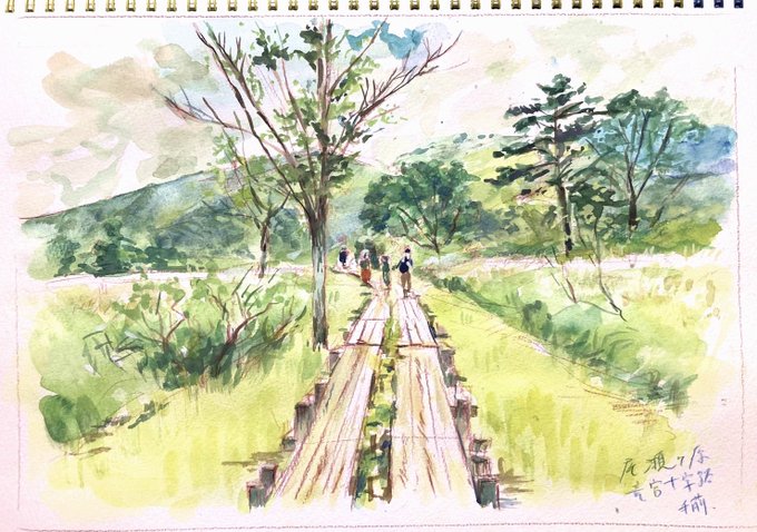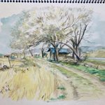 いつもの小道に久しぶりに行ってきた。 しげしげに茂っていた。 #農山村画 #sketch #水彩 #不透明水彩 #watercolor #水彩画 #watercolorpainting #painting