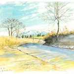 雪。 スキャナーを買ったんですね。(ずっと携帯で撮ってた)これで補正が楽ちんですが、やっぱり原本の感じは出ないみたい。 #農山村画 #水彩 #不透明水彩 #watercolor #水彩画 #watercolorpainting #painting