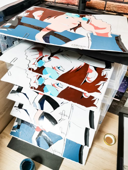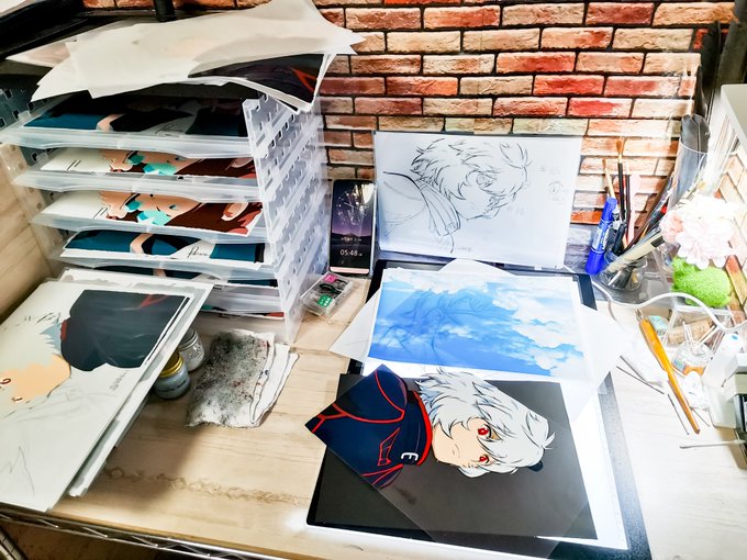 セル画用の作業場。棚が足りず今こんな感じです🤣🤣楽しい✨✨ 今回はやってる間に一人勝手に大掛かりな企画にしてしまったのでw今後必要か分からないがセル画棚を一応増築予定🤣 #セル画 #線画 #迅悠一 #ワールドトリガー #絵描きさんと繫がりたい #絵柄が好みって人にフォローされたい twitter.com/usaka883/statu…
