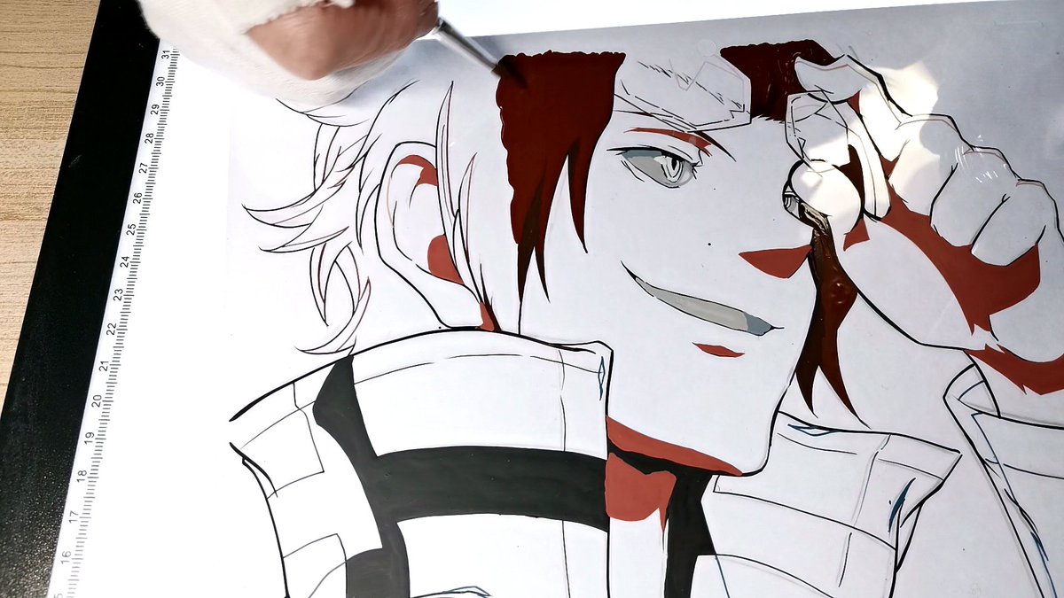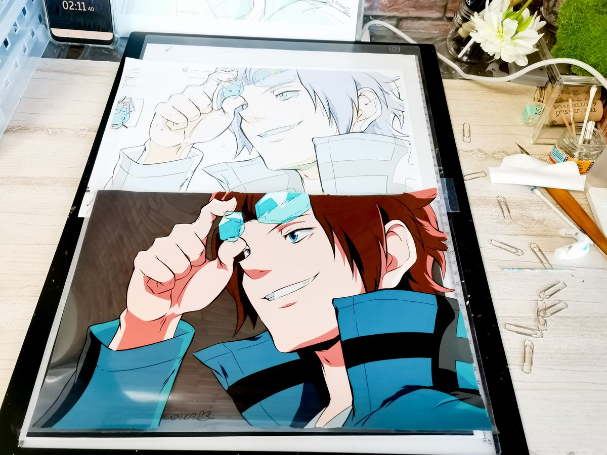 セル画が塗り上がったのでいよいよ最終メンテ。セル画の掃除😘 塗り漏らし、はみ出し、ホコリ等肉眼判別しづらい部分のチェック。 うさか流は下に黒い画用紙を引く ゴミが一目瞭然😆✨✨ #セル画 #線画 #迅悠一 #ワールドトリガー #絵描きさんと繫がりたい #絵柄が好みって人にフォローされたい twitter.com/usaka883/statu…