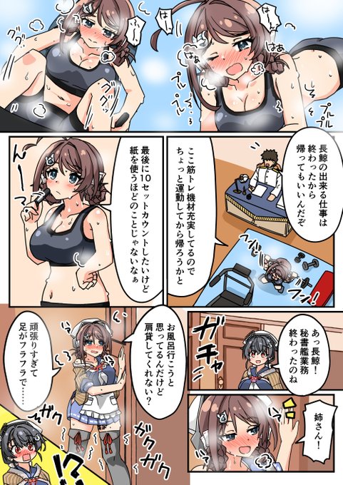 #艦これ版深夜の真剣お絵描き60分一本勝負 #艦これ版真剣お絵描き60分一本勝負_20220504 #艦これ #迅鯨 ワンドロで終われなかったほぼツードロじんげーさん 長鯨ちゃんのアホ毛は邪な気配(主に姉の)を察知する事ができるみたいです ちなみに提督は呑気に海防艦の為に兜を折ってあげてるそうです