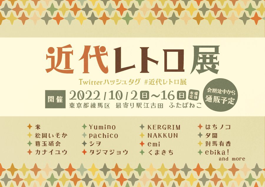 こちらは本日よりスタートです! レトロな雰囲気の絵を描きました。 切手型のシールは郵送に使えませんがかわいくできたのでおすすめです💐 よろしくお願いします!!! #近代レトロ展 twitter.com/futabaneko/sta…