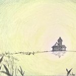 「目指す場所」 使いどころのない色は 単独で使ってみよう。 因みにコレは、オリーブグリーンです。 okusyadia.wixsite.com/yasuko-hirai/b… #アートワーク #絵描きを目指す人へ贈る言葉 #悩みがちな人への応援歌 #本日の絵画 #色鉛筆画 #逆光アート #風景画