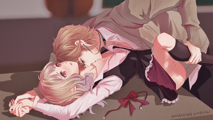 Dibujito que hice por el cumple de Yuma y se me había pasado publicar el sábado 💗🍰 #digitalart #diaboliklovers #YumaMukami #無神ユーマ #ShuSakamki #逆巻シュウ