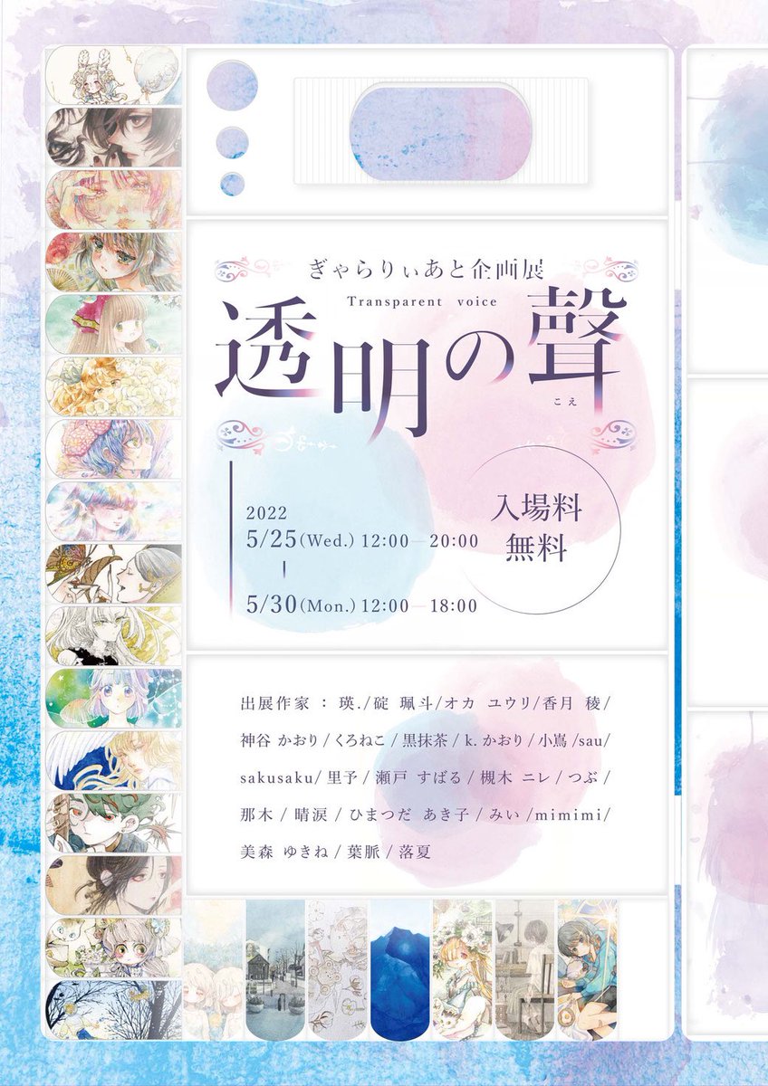 【おしらせ】💭 企画展『#透明の聲』 ✴︎2022.5.25(wed)~5.30(mon) ✴︎12時~20時(最終日~18時) ✴︎ぎゃらりぃあと様(大阪) 作家さんごとに違う水彩紙を使っての展示会です 私はW&Nプロフェッショナル水彩紙担当しています✨ gallery-ato.jimdofree.com/%E9%80%8F%E6%9…