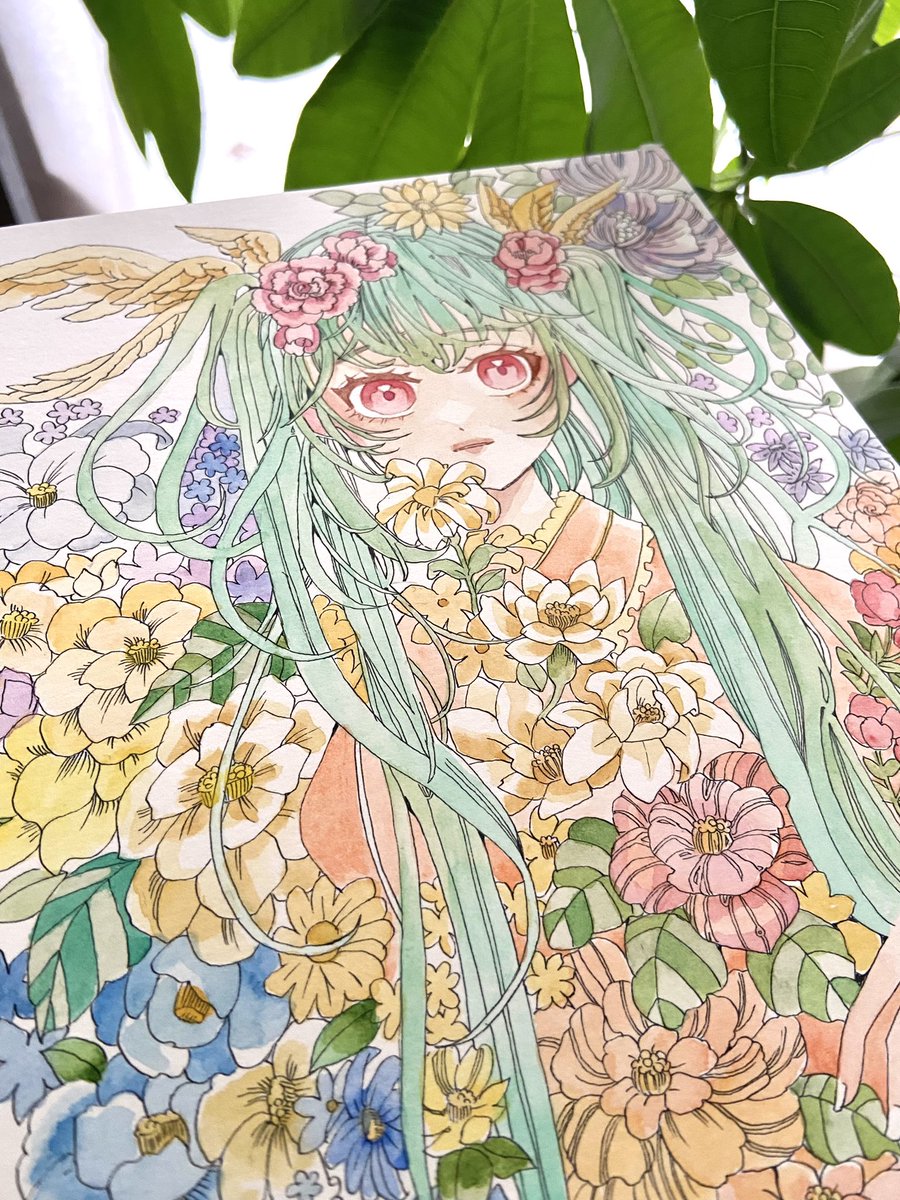 秋コミティア、受かると信じてイラスト集の表紙を描いてます。 #wip #アナログ絵 #COMITIA #イラスト好きさんとつながりたい #透明水彩イラスト #透明水彩 #オリジナルイラスト #イラスト好きな人と繋がりたい #花 #天使 #同人誌_表紙 #イラスト集 #イラスト集作成中