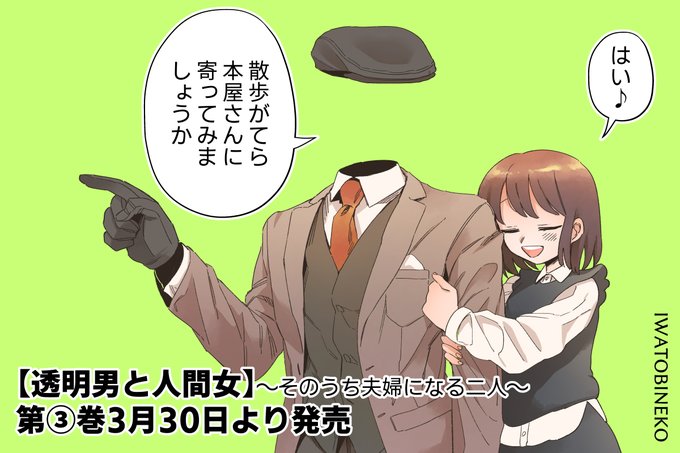 (5/5) 【#透明男と人間女】~そのうち夫婦になる二人~ 第②巻発売中!! オンライン書店・電子コミックストア↓ futabasha.co.jp/book/978457544… ①巻の試し読みはこちらをどうぞ↓ twitter.com/iwawotobuneko/…