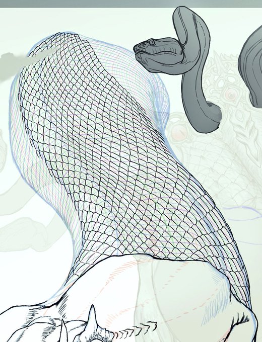 #やじるのえ #途中経過 #monsterdesign #creaturedesign 怖い顔系の龍。 人間、怪物、化け物問わず悪いことすると天から降りてきて「めっ!」てされる。 美しさと不気味さを両立出来たらいいな